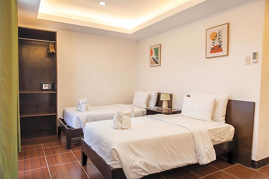 Deluxe Twin is 409 square feet and includes 2 single beds 80-130 width plus balcony, cable tv, and safe.